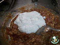Добавим муку и замесим тесто. Оно должно быть средней консистенции. Не жидко, но и не очень густо. |