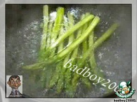 B кипящую, подсоленную воду кладем почищенную спаржу. |