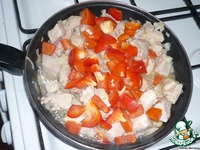 Потом добавим перец и помидоры, будем жарить еще минут 10. |
