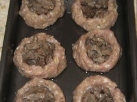 Из фарша формируем гнездышки. |