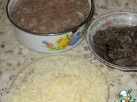 Подготавливаем продукты - делаем фарш для котлет (у меня уже был готовый), печень режем и обжариваем до полуготовности, сыр натираем на терке. |