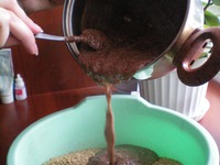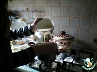 Смешать масло, молоко и какао со взбитыми яйцами. Варить на медленном огне, постоянно помешивая. Закипит - снять с огня. |