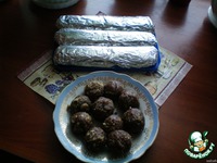 Я сделала три колбаски, а из оставшейся массы накатала шариков. Отправляем в холодильник на час. |