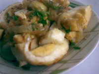 Яйца порезать четвертинками. Выложить на тарелку, посыпать луком. Полить соусом и посыпать мелко нарезанной петрушкой. Яйца а-ля Китай готовы! Приятного перекуса! |