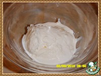 Взбить отдельно сливки до высоких пиков. |