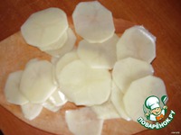Возьмите одну-две картофелины, очистите и натрите на терке тонкими колечками (получается достаточно много). |