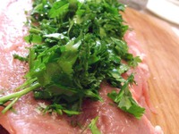 - второй рулет я присолил, приперчил и начинил рубленой петрушкой и укропом |