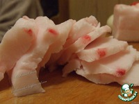 Так, с продуктами разобрались. Берем сало и нарезаем на ломтики. |