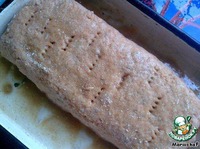 Противень смазать маслом и посыпать панировочными сухарями. Рулет положить на противень швом вниз. Поверхность рулета разровнять, посыпать сухарями, сделать несколько проколов, сбрызнуть маслом. |