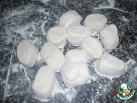 Из муки, кефира, соды и соли замесить тесто и разделить на небольшие кусочки, у меня получилось 12 |