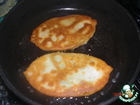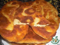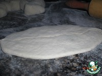 Обсыпать мукой, немного приплюснуть рукой, а потом аккуратно раскачать в тонкую лепёшку скалкой, чтобы начинка не вылезла |