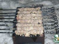 Подготовила мясо для жарки. (за полчаса до нанизывания мяса на шампура я его посолила). |