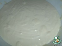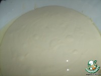 Теперь накрываем посуду с получившейся кремообразной массой пищевой пленкой и охлаждаем. Затем выдерживаем в холодильнике 2 часа. |