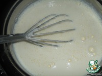 В желтки вливаем горячие сливки, помешивая смесь, чтобы получить однородную массу. |