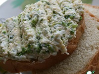 Перемешиваем мятую черемшу, сыр, яйца, сдабриваем все майонезом. Я еще немного сметаны добавила - нравится мне заправка сметана + майонез! |
