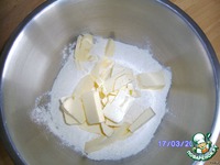 Взбиваем яйцо с щепоткой соли, добавляем муку и размешиваем. Режем на кусочки масло и разминаем с мукой до получения однородной массы. |