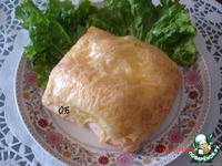 Укладываем на противень, смазанный маслом. Сделаем маленькие дырочки, чтобы воздух выходил, ставим запекать при 200 гр. 30 мин. |