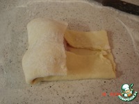 Раскатать прямоугольник, положить мясо, на него кусочек сыра. |