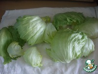 Салат "айсберг" разобрать на листья, тщательно вымыть, обсушить, |