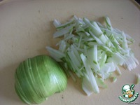 Яблоко вымыть, удалить сердцевину, нарезать соломкой и сбрызнуть соком лимона. |