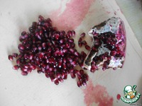 Гранат разрезать пополам и, аккуратно снимая перепонки, вынуть зерна. |