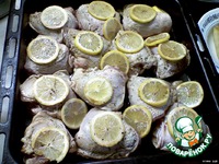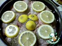 Выложить в кастрюле слой лимонов, слой курицы, слой лимонов, слой курицы и т.д. |