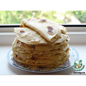 Теперь читаем внимательно! Сначала обжариваем (всухую) лепёшку с одной стороны, переворачиваем и смазываем только одну (!), уже обжаренную, сторону сливочным маслом. |