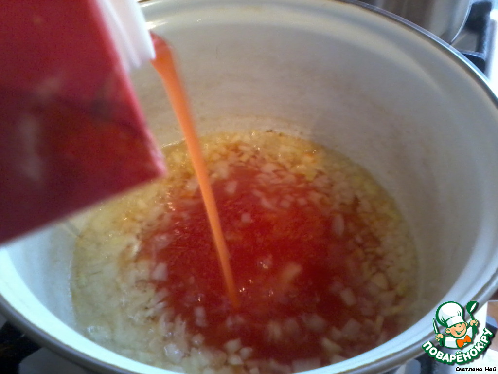 Добавьте в кастрюлю томатный сок |