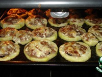 Описание: Кружочки кабачка, запеченные с фаршем и майонезом