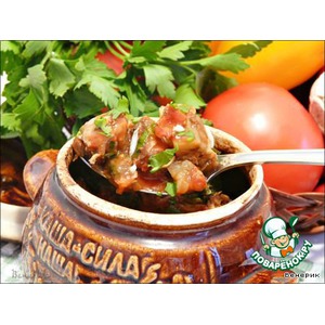 Описание: Купила я сухую приправу "Аджика", и на обратной стороне был дан рецепт "Чанахи". Прочитав рецепт, я поняла, что готовлю почти так же узбекскую "Домляму", только "Домляму" готовлю в большом казане, а "Чанахи" предлагалось приготовить в горшочках, что, в принципе, меня и подкупило, и ещe заинтересовала закладка мяса, здесь мясо предлагалось класть в самую последнюю очередь, кстати, получилось очень вкусно, и мясо было нежным)))