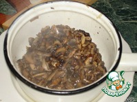 Лук нарезать полукольцами и обжарить на растительном масле (можно использовать масло, оставшееся от грибов), слить масло. |