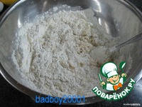 Просеять 250 г муки, добавить 40 г сахара, щепотку соли, дрожжи и пакетик ванильного сахара. |
