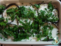 Раздавливаем в чеснокодавке зубчики чеснока, кладем в мисочку, заливаем крутым кипятком и даем чесноку настояться не менее 15 минут. В это время довольно мелко режем зелень. Я сливаю «отвар» чеснока и использую только его, кто любят поострее, могут чеснок в соусе оставить. Затем я перемешиваю майонез с отваром чеснока. Соус не должен быть очень жидким, в противном случае он стечет с баклажанов.