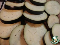 Баклажаны нарезать кружками толщиной 1-1,5 см. Сложить в емкость, посолить, оставить, для того чтобы с них сошла горечь. Если кто-то совсем не любит баклажаны с горчинкой, можно их почистить. Я не чищу. Емкость периодически встряхиваю.