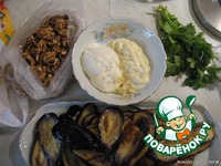 Обсушенные таким образом баклажаны поджарить до золотистой корочки с обеих сторон, выложить на бумажное полотенце, промокнуть, чтобы убрать излишки масла. |