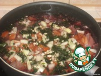 Поставить тушиться, как закипит огонь убавить. Тушить 2 часа, жидкость должна почти вся выкипеть. |