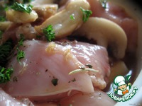 Филе порезала крупными кубиками, грибы - пластинками. Приготовила маринад и замариновала на ночь. |