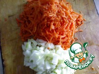 Морковь натереть на крупной тeрке. Лук мелко порезать. |