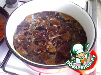 В кастрюлю налить воду, дать закипеть и высыпать порезанные грибы. Варить минут 20. |