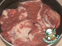 В смазаную маслом форму уложить куски свинины. |