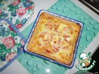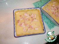 Залить яичной смесью и поставить в духовку. Запекать 20-30 минут до румяной корочки. |