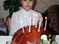СПЕЦИАЛЬНО ДЛЯ ЛЕНЫ: фото торта с ребенком и свечками. Он косенький тут, правда... Ну, как еще один вариант внешнего вида :) |