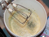 Добавляем молоко, масло и муку. Хорошенько перемешиваем, выпекаем блины.