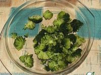 Брокколи суем в микроволновку, держим при небольшом количестве жидкости минуты три-четыре. Или варим в кипятке 2 -3 минуты.