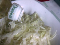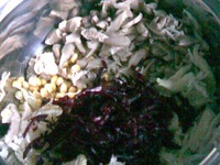 Kапусту соединить с оставшимися продуктами и заправить соусом. |