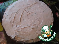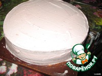 и сверху кладем ровный слой крема. Закрываем вторым коржом. |