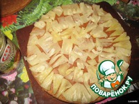 поверх ананасов опять выкладываем крем и закрываем третьим коржом. |