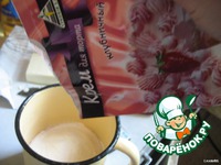Берем любой сухой крем для торта. Я использую клубничный крем от фирмы Цикория. |