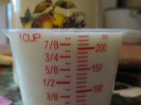Делаем крем. Для этого в высокую посудину вливаем стакан (250мл) молока. |