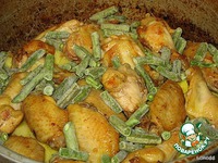 На картофель жареные крылышки и мороженную стручковую фасоль. |